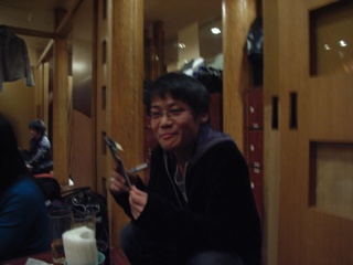 新会計に就任した山本。 仕事のためあまり飲めなくて不満そう。 |