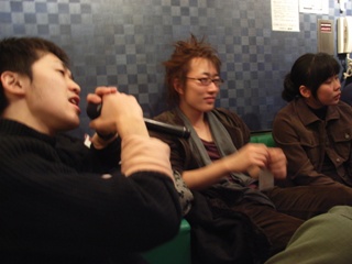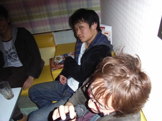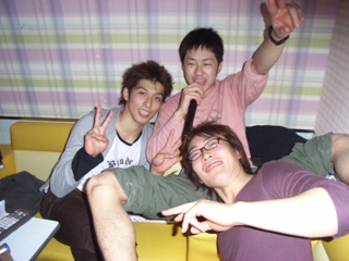 ストレスたまったら歌うに限る。 ノリノリの山本。 マイクを奪われ不満そうな二郎。 |