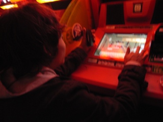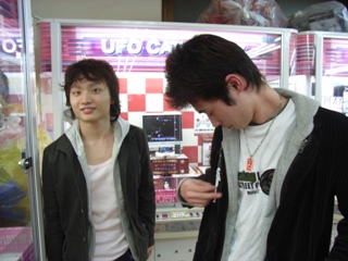 二次会のあとゲーセンに行きました。UFOキャッチャーで自分のそっくりさんを<ゲットした西川さん。br> |