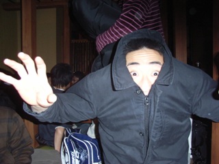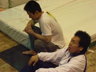 二郎の集中の真似!!・・・じゃなくて、千年殺しをしようとしてる吉川。 |