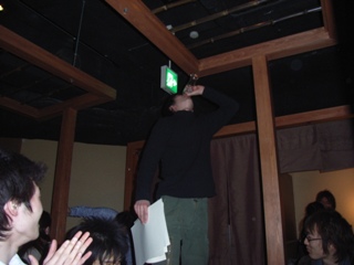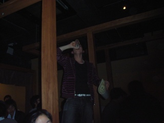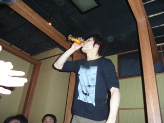 打ち上げです。 一週間前にノロウィルスに感染した横国よっしー。 |