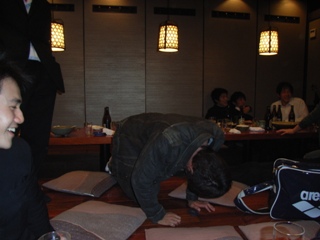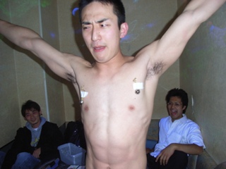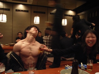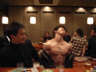 一次会の写真はないです。二次会にて興奮する森本。 |
