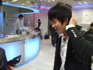 三次会はカラオケ。慶應の部屋。最後まで元気な慶應。 |