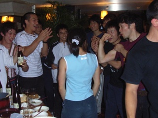 半分くらい裸体で、お見苦しいものをお見せしました。 そんなこんなで、この後阪大と『あさまっつ』をして、納会は無事(?)に終わりました。 七大戦その後はまた今度ということで・・。 |