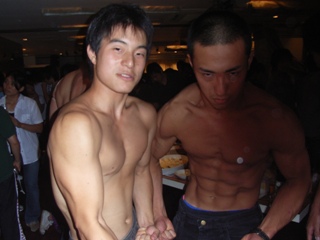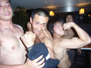 か、体が勝手に・・・うわぁぁぁー。 まっちょウィルスによりポージングさせられる西岡。 |