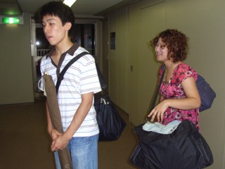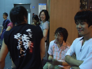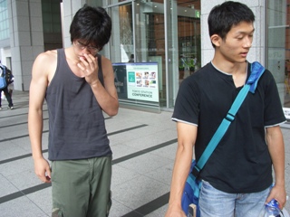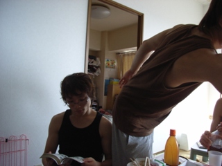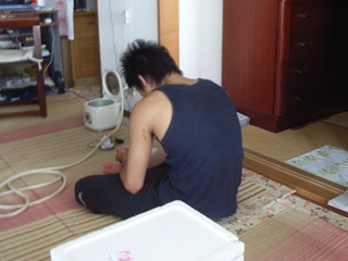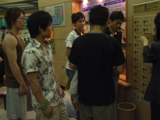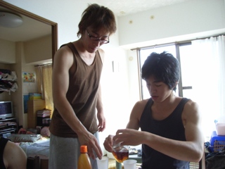 七大戦の納会後です。 男子部員は今年も西川さんのお宅にお邪魔することに。 みんなに遅れて、西川さん宅に到着した西岡とてし。 西川さん宅といえば、40階を越える超高層マンション。 去年もお世話になったそのブルジョワジーな環境。 玄関はオートロックともちろんセキュリティーもばっちり! 部屋の番号を押して西川さんに鍵を開けてもらわねば・・・ と、ちょっと待て 部屋の番号わかんねー! 便利なセキュリティーがここで大きな壁に!! このままでは快適環境を目の前にして、徹夜で明日を迎えることになってしまう!! とりあえず、部屋で徹夜で勉強して待ってるよと言ってくれた西川さんに電話・・・ トゥルルルルルル、トゥルルルルルル・・・鳴り響く呼び出し音 で、出ない・・。 何度かけても出ない。 ・・・まさか 勉強に飽きてもう寝てしまったのか!! さすがに野宿はありえないので、とりあえず先に部屋に行った榊原に電話・・・ トゥルルルルルル・・・鳴り響く呼び出し音 ・・・・出ない ちっ、しょうがない、次はピンに電話だ! トゥルルルルルル・・・再び鳴り響く呼び出し音 お前もか!くそ、役にたたねーな!! 最後の頼み、小川!出てくれ!! トゥルルルルルル・・・以下同文 もうほんとに誰も電話にでんわ。 なんどかけてもでんわ。電話に・・・。 こんなくだらないことばかりが頭によぎってました。 しかたない、 郵便受けから名前を探すか! よし、 「西川という表札を探して来い、てっしー」 ここぞとばかりに後輩を使う西岡。 が 見つからず・・・・ このまま朝を待とうかとも思ったのですが、 やはり、試合後の疲れをどうしても癒したい!! それに、なんかこのマンションの周りは蚊だらけで居場所がない!! ということで、せめて部屋番号でも調べようとホテルに帰っている部員に電話することに。 よーし、柳田に電話だ!!! あいつなら起きてるだろう(AM5:30)!(←根拠なし) ・・・おかけになった電話は現在電源が入っていないか・・・ お前もかーーーーーー!!!! 二人がかりで電話しまくってるのに誰も出ない。 もう、無視されてると思われているくらいでない。 ってか、以外に部員の電話番号を知らないという新事実も判明。 次に、ダメもとで山路に電話・・ トゥルルルルルル・・・・ トゥルルルルルル・・・・ (くそっ、だめか・・・) トゥルルル、ガチャ「もしもし・・・」 出たーーーー!!!! 電話が繋がってこんなに嬉しいとは!!ありがとう山路! とりあえず、西川さんの部屋番号をゲット!! 寝るまであと少し!! とにかく玄関をあけてもらおう!! 部屋番号を押してっと ピンポーン、ピンポーン、ピンポーン・・・鳴り響く呼び出し音 まさか・・・ 部屋の呼び出し音、寝ていても気づかないわけがない。 今起き始めているところだろうし、もう一回呼ぶか・・ ピンポーン、ピンポーン、ピンポーン・・・以下同文 ・・やられた。 その後何度もチャレンジしても応答なし> まさか部屋の呼び出し音すら届かないとは。 もうだめだこうなったら、諦めるしかない・・ と普通の人は思うだろう。 だが、こっちには医学部のてっしーがいる!! 彼の頭を使えば、こんなロック楽勝!! 結果を先に言うと、てっしーの天才的頭脳を用いて僕らはこのマンションに見事に入れました!! どうやって入ったかというとというと・・ 1、まず玄関前に潜む 2、人が出てくるのを待つ 3、出てくるのと同時に侵入!! と、いたってシンプル。 そして、なぜか、玄関の鍵も開いていたので、無事に、そして勝手に侵入したのでした。 うまく進入でき、したり顔しているてっしー 一枚の写真のコメントために無駄に長くなってしまったな。 |