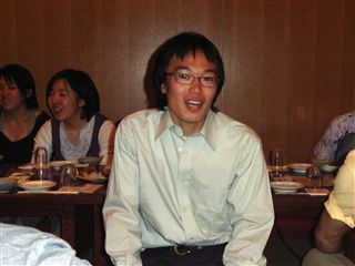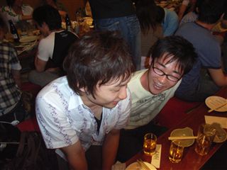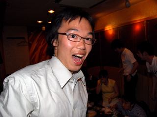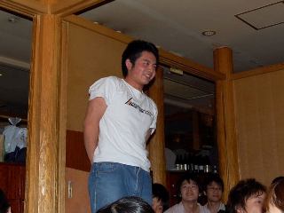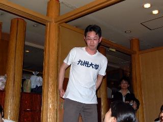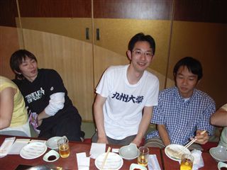 今年の新歓は一味違う!! どこが違うかというと・・・・ ついに七大学の体操部が全部そろったのです!! ![]() 北の国からやってきた北大OBの大西さん。 ![]() 東北には美人がいなかったと嘆いていた東北大OBの石川さん、小口さん、北原さん。 ![]() 名大からスパイしにきたという名大OBの小池さん。 ![]() ビールはキリンしか飲まない京大OBの安田さん。 ![]() 仕事がいそがしくて大変という大阪大OBの平田さん。 ![]() そして、九州からはるばる久保木さん!!! あれ??? |