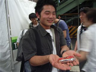 甲斐の一発芸。 ラサール時代の生徒手帳を投げまくってました。 |