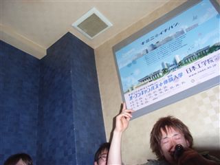 ![]() カラオケでの受付待ち中の甲斐。 支柱の角度を測っていたに違いない。 |