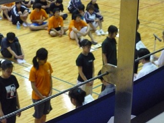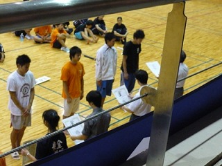 ![]() 閉会式終了後ミーティング(連絡)がありました。 ![]() エールをしてしめ、そして打ち上げに。 ん? ![]() みんな集まって・・・ ![]() !? ![]() いろいろし(でかし)てくれたまーしーに いろんな意味での”労い”をしたところ。 本人はまんざらでもなかった様子。 |