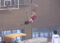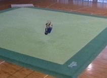 よなみね床 テンポ宙半ひねり。 つなげて前宙。 |