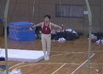すずきさん吊輪 宙下り半ひねり? ひねる方向と腕の振りが逆ですよ。 |