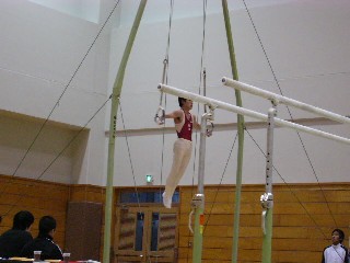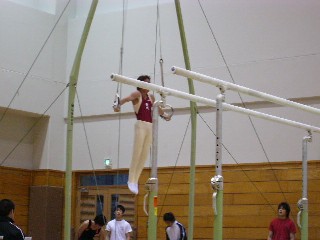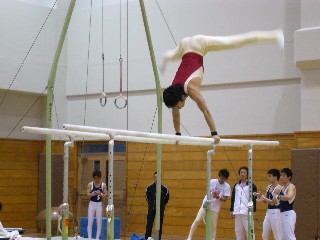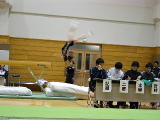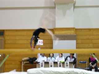 ![]() 続いて女子。段ちの宙返り。バーに近い・・・。 |